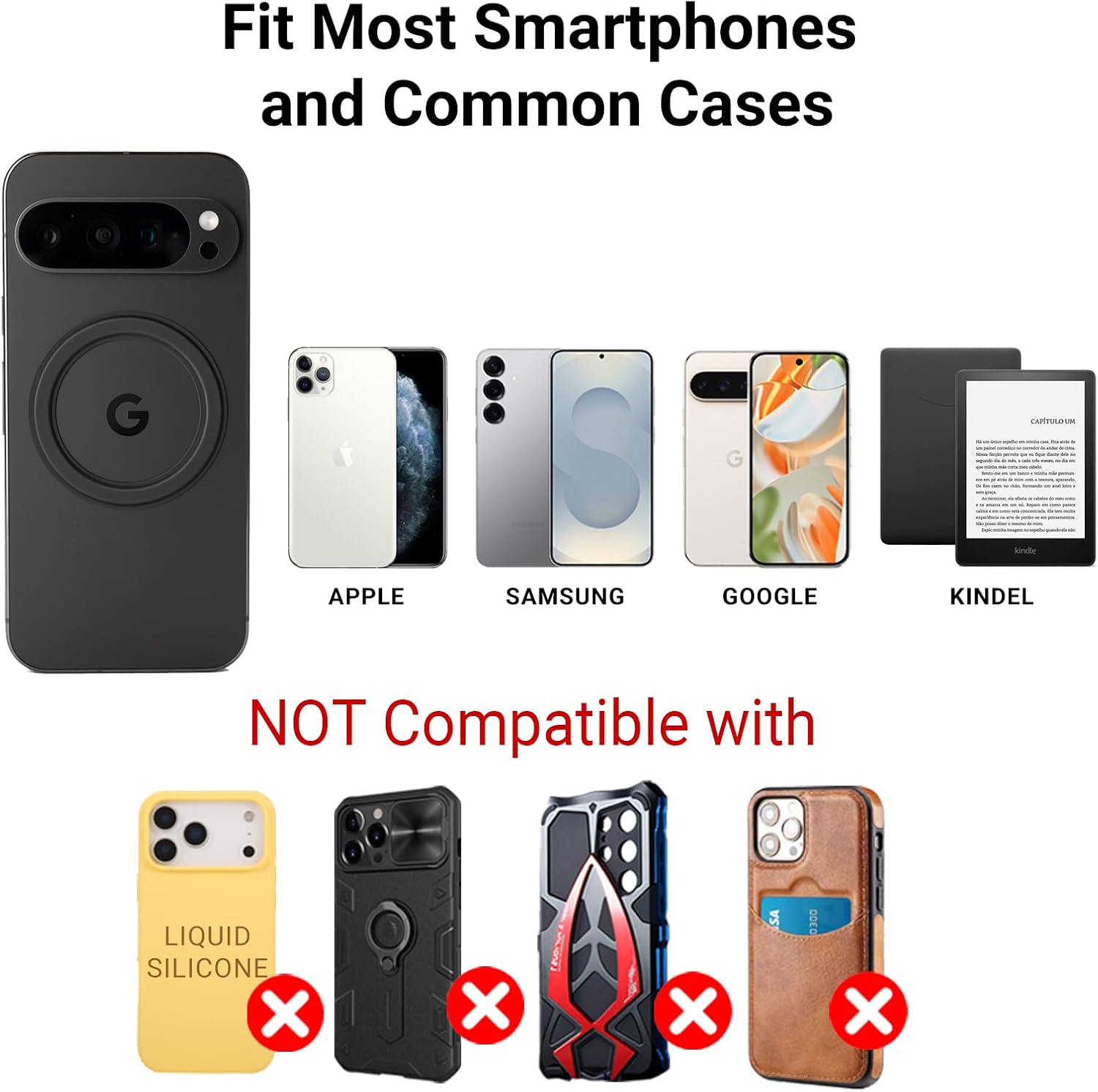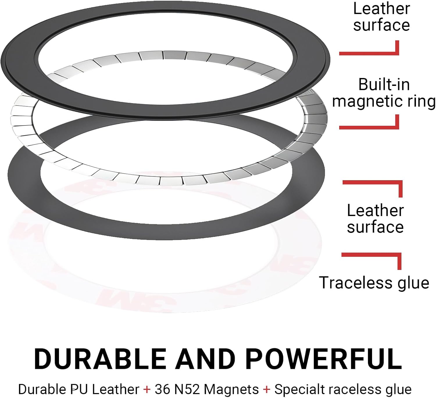 - FRIENDLY NOTE: Your box includes one 2000Gs magsafe sticker ring, one adhesive metal ring for non-metal surfaces. The powerful 3M adhesive provides a lasting bond and removes cleanly when needed. Note: ① For best results, use on flat, hard-shell cases. ② Not compatible with liquid silicone, heavily textured surfaces, Wallet cases. ③ Do not leave in high temperatures (e.g., inside a car). The cover may fall off.