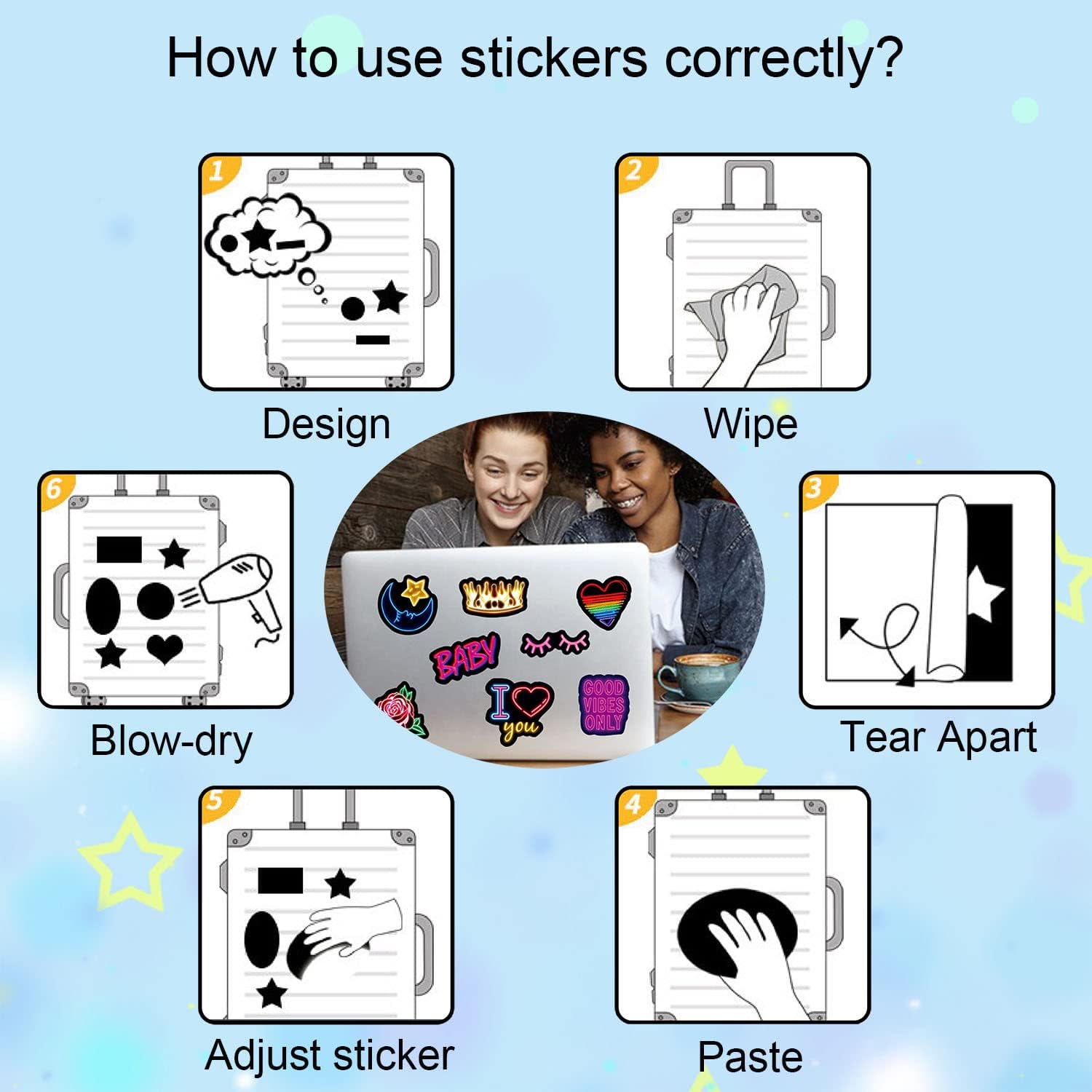 - Smooth Glossy Texture: Made of quality vinyl with a glossy finish, each sticker is waterproof, easy to peel, and leaves no sticky marks on your devices or accessories