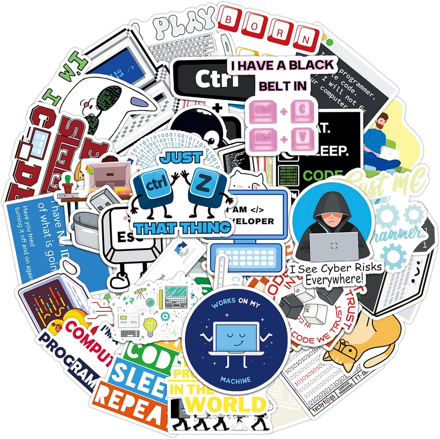 - Designed for Daily Use: Ideal for tech lovers decorating laptops, notebooks, tablets, water bottles, or home office gear with personality and a hint of programmer humor