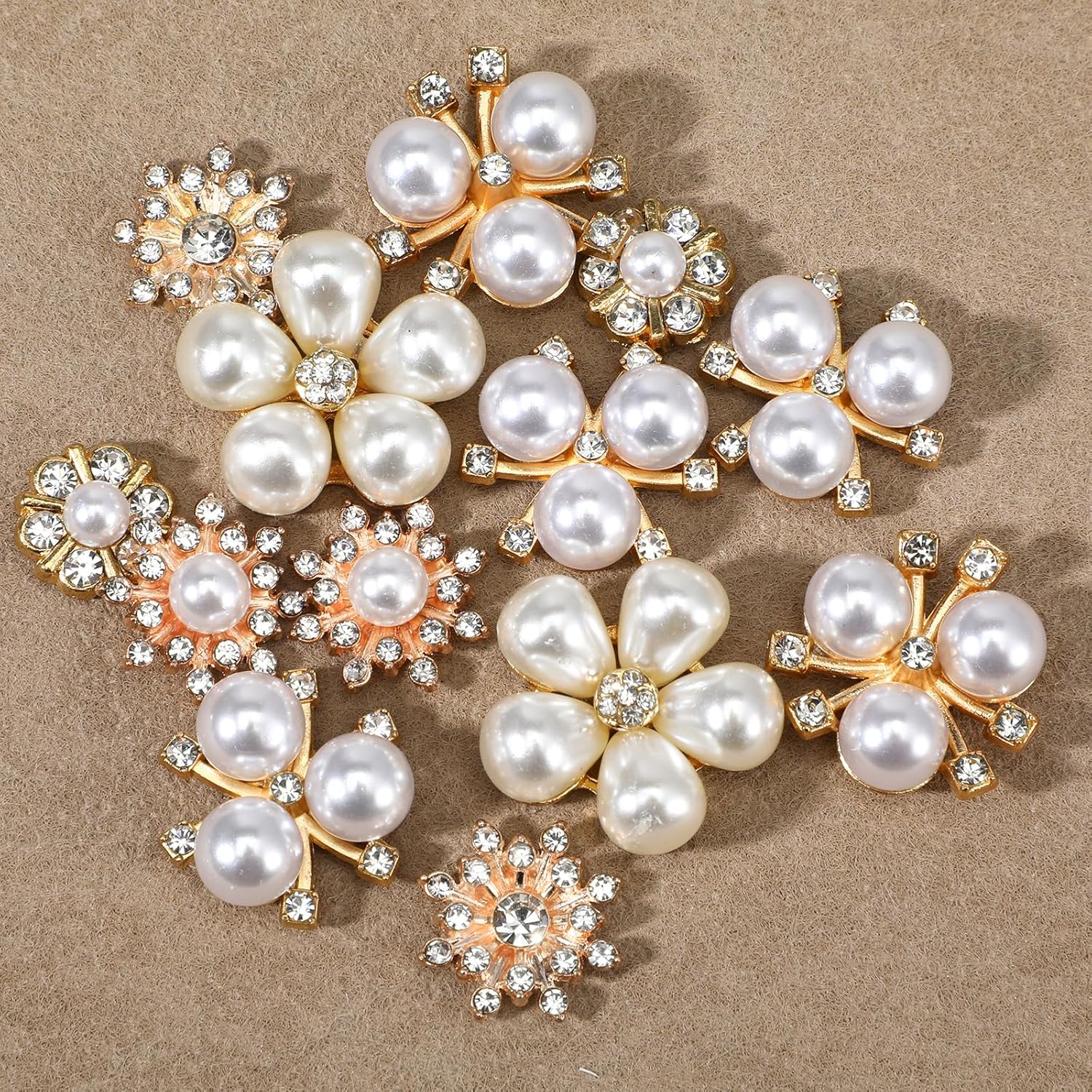 - Flat Back Design: These flat back rhinestones and flower buttons feature a flat back without sewing holes. This feature allows for easy and flexible application to various surfaces such as fabric, leather, or plastic using adhesive. You can seamlessly integrate these embellishments into your designs, creating clean, professional, and sophisticated finished products for everything from shoes to gift boxes