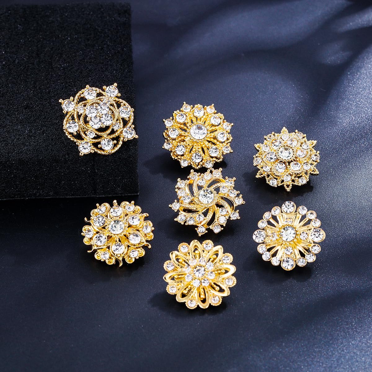 MEEDOZ Crystal Rhinestone Flower Brooch Pin Set for Women DIY Bridal Wedding …