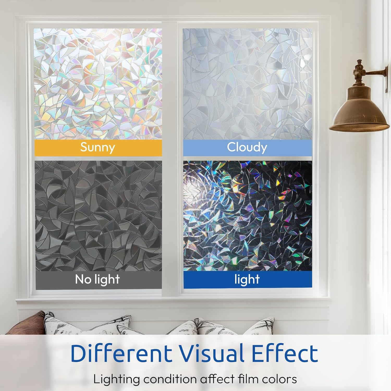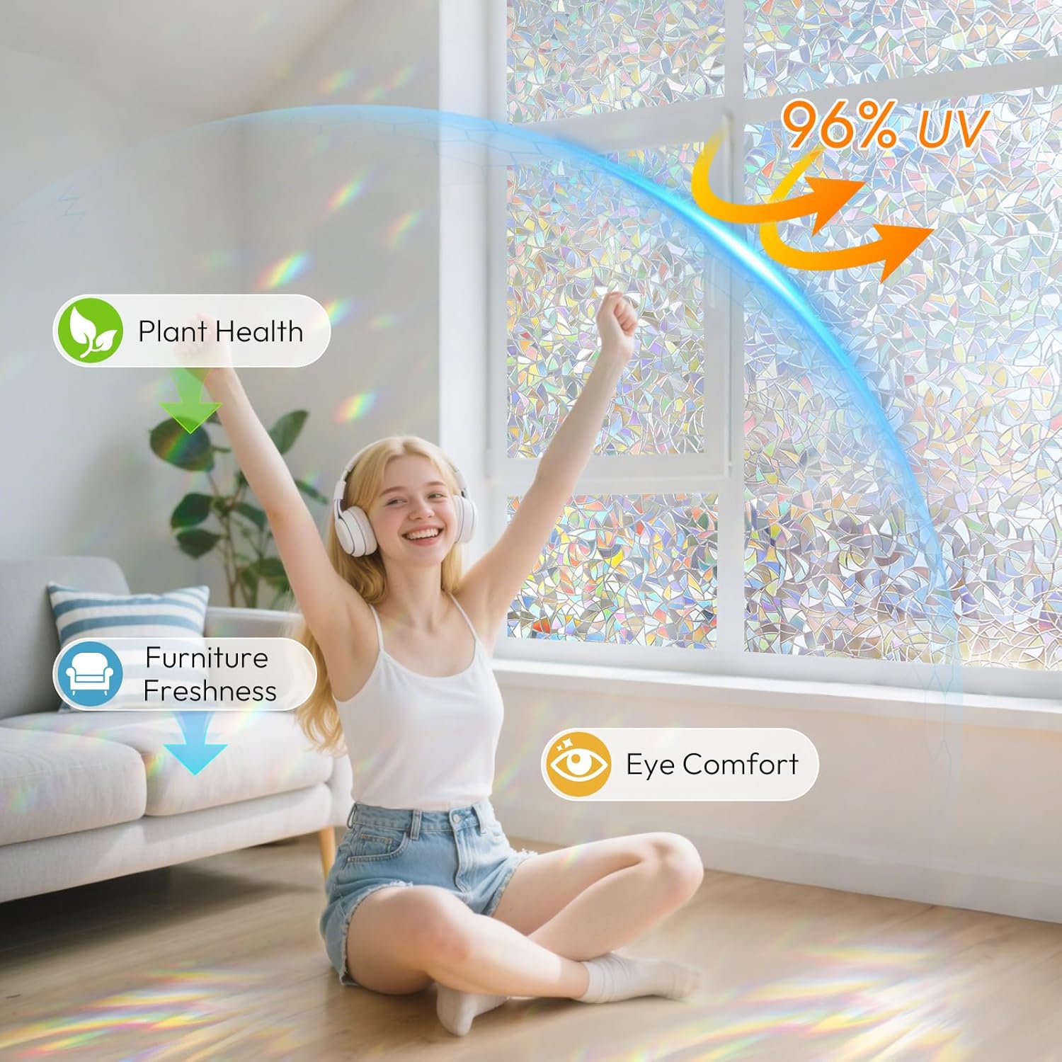 rabbitgoo Window Privacy Film Stained Glass Rainbow 3D Prism Decorative Iridescent Window Sticker Static Cling Suncatcher UV Protection for Home Heat Control, 17.5″ x 78.7″