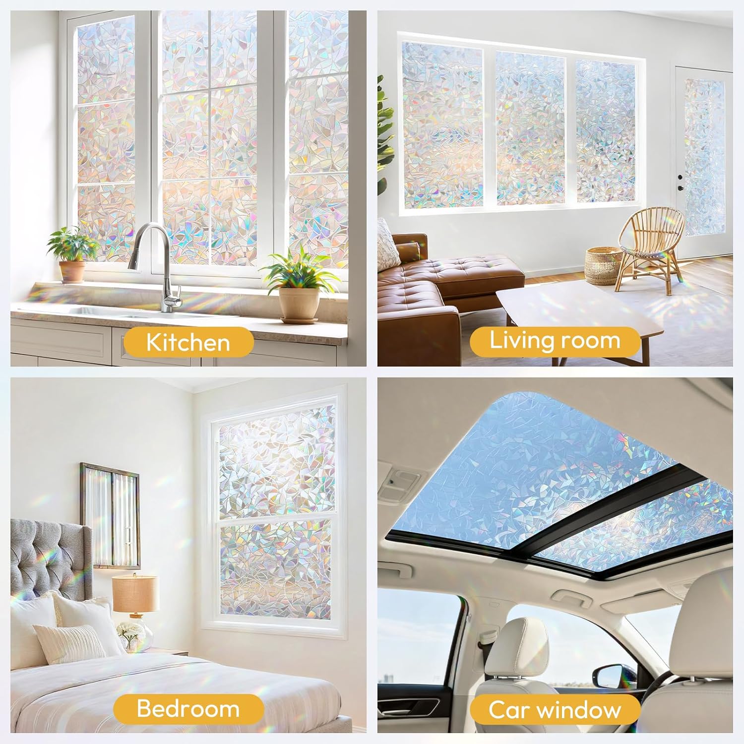 Be the first to review “rabbitgoo Window Privacy Film Stained Glass Rainbow 3D Prism Decorative Iridescent Window Sticker Static Cling Suncatcher UV Protection for Home Heat Control, 17.5″ x 78.7″”