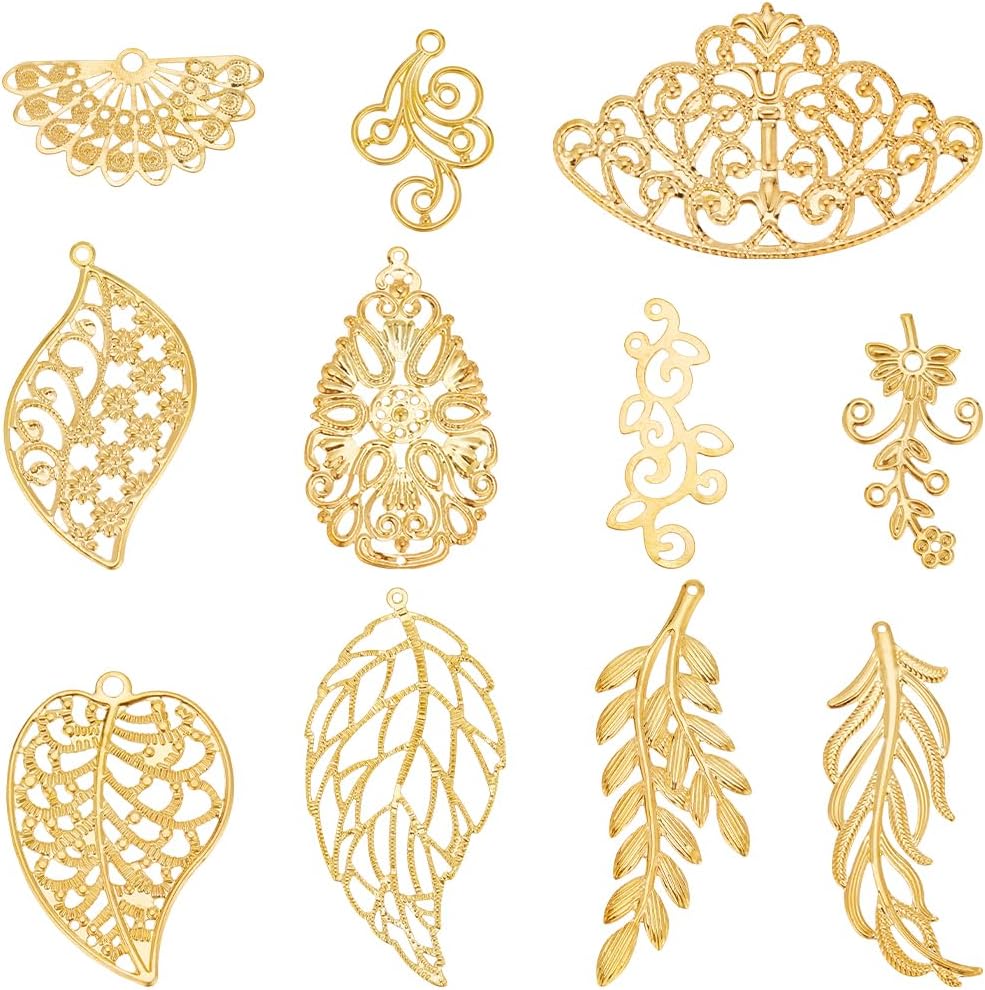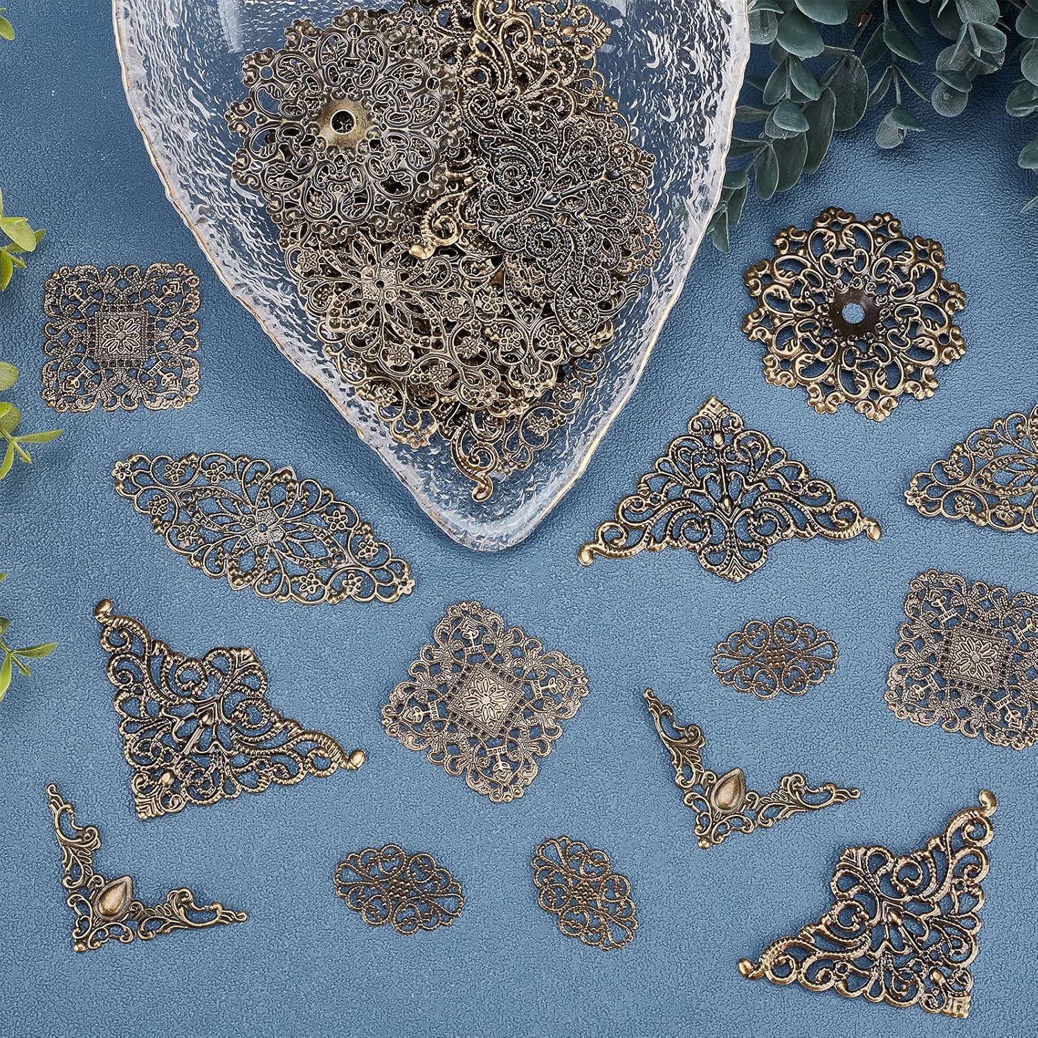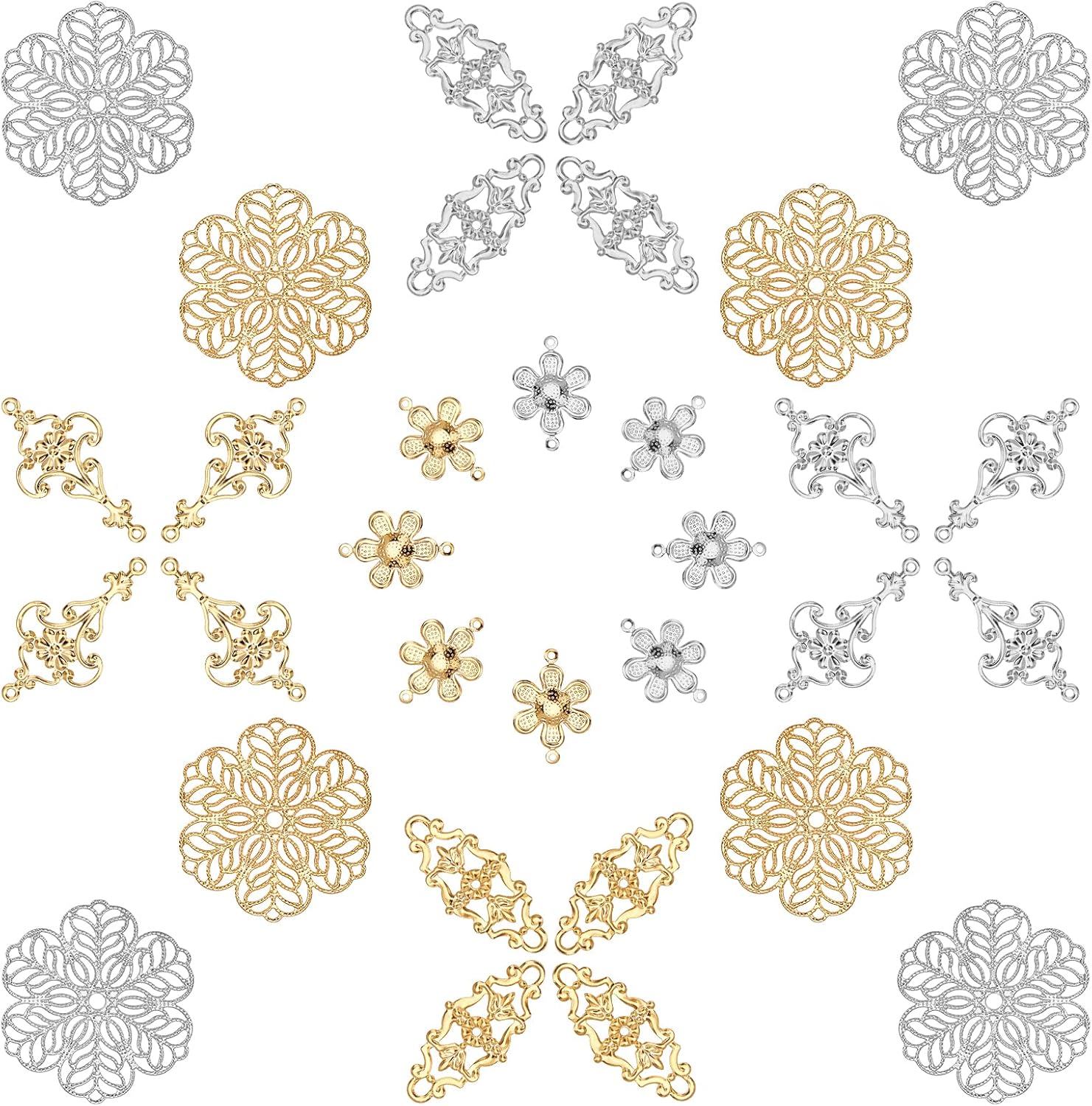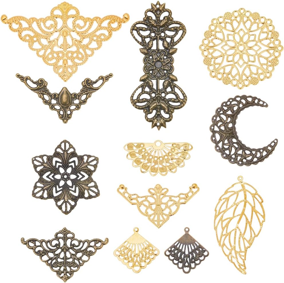 SUNNYCLUE 1 Box 60Pcs 6 Styles Antique Bronze Filigree Metal Filigree Pieces Iron Flower Embellishment Hollow Tibetan Charm for Jewelry Making Charms Choker Necklace Bracelet Earrings DIY Accessories
