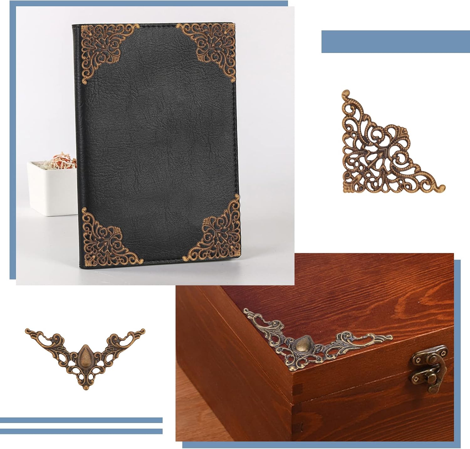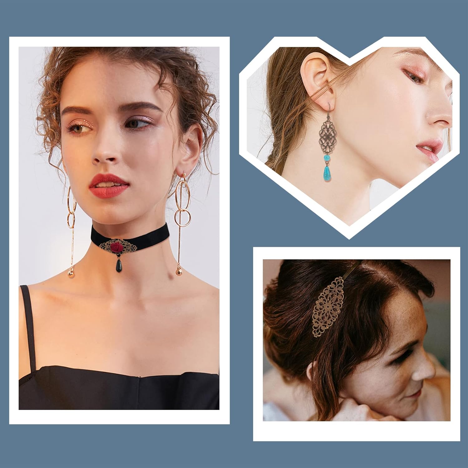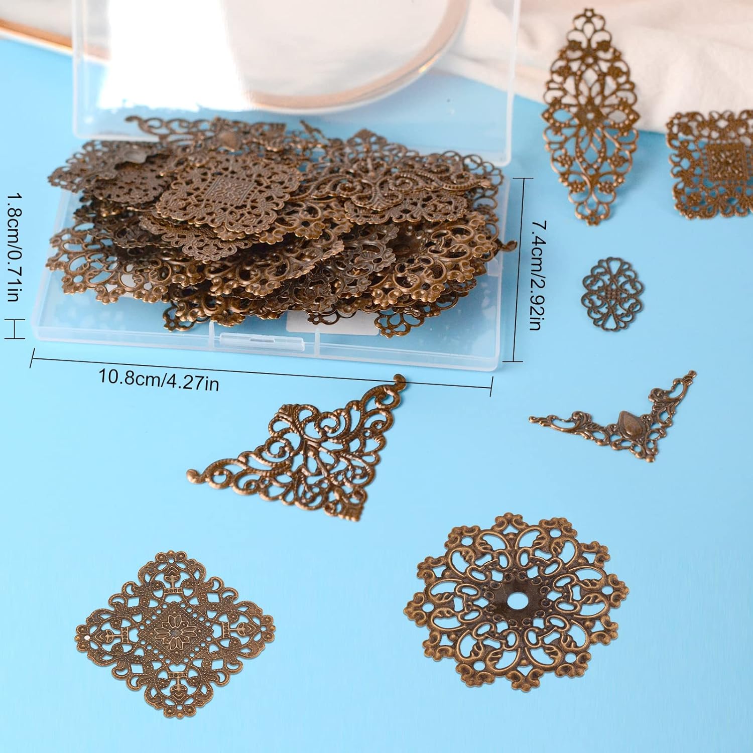 SUNNYCLUE 1 Box 60Pcs 6 Styles Antique Bronze Filigree Metal Filigree Pieces Iron Flower Embellishment Hollow Tibetan Charm for Jewelry Making Charms Choker Necklace Bracelet Earrings DIY Accessories